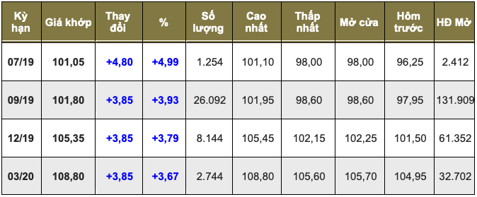 Hôm nay (21/06/2019) giá cà phê tại thị trường Việt Nam và thế giới đều tăng mạnh. Giá cà phê Robusta trên sàn London kỳ hạn 09/19 tăng mạnh 47 USD/tấn, hay + 3,34%, các kỳ hạn khác cũng tăng mạnh 45 - 47 USD/tấn. Giá cà phê arabica trên sàn New York kỳ hạn 09/19 tăng mạnh 3,85 cent/lb hay +3,93% lên mức 101,80 cent/lb, các kỳ hạn khác cũng tăng mạnh 3,85 - 4,80 cent/lb. Sáng nay, giá cà phê tại khu vực Tây Nguyên tăng mạnh 900 ngàn đồng/tấn, lên mức 31,8 - 32,9 triệu đồng/tấn.