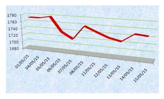 Tuy nhiên, dao động giá trong nửa đầu tháng 5-2015 rất bất thường (xin xem biểu đồ diễn tiến giá trên sàn kỳ hạn).